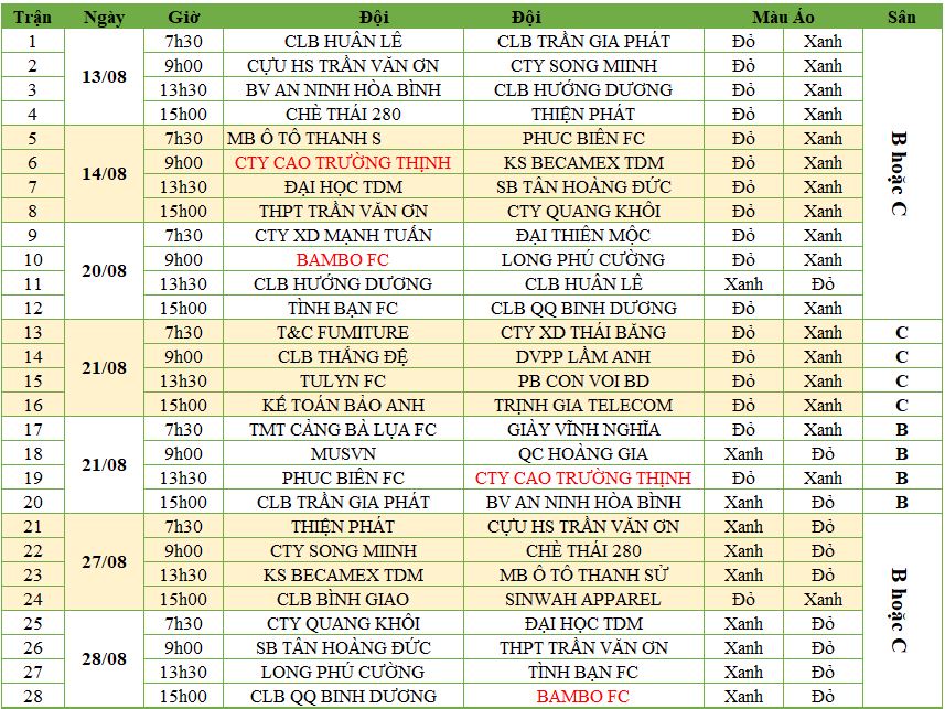Lịch thi đấu sân Phụ – Sau SVĐ Gò Đậu