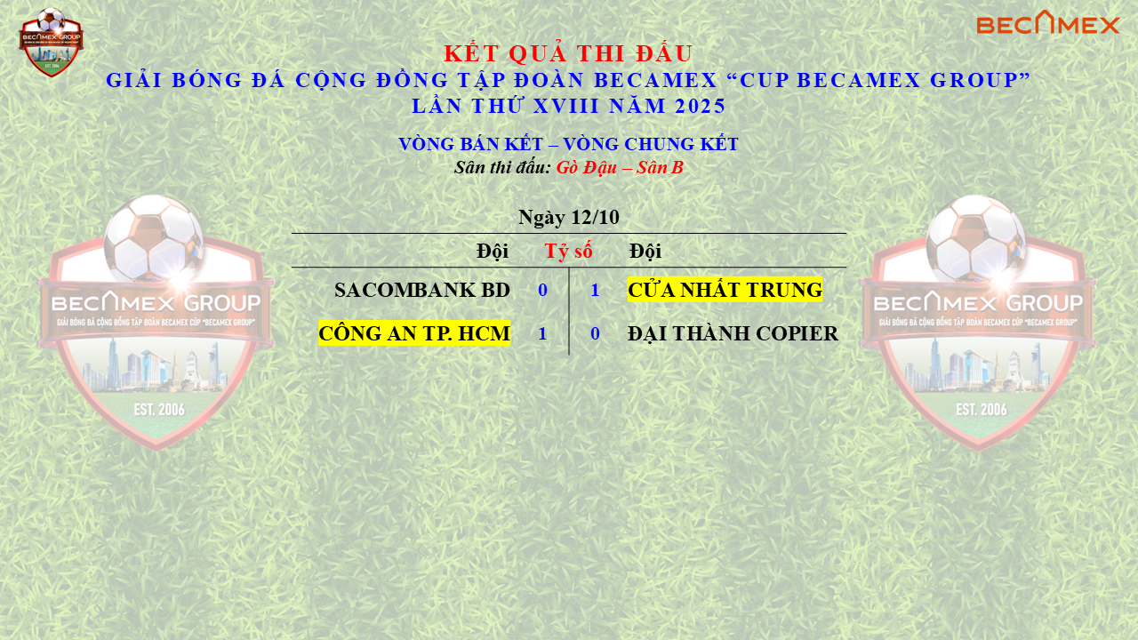 BTC Giải bóng đá cộng đồng Tập đoàn Becamex “Cup Becamex Group” xin thông báo v/v tổ chức Vòng chung kết mùa giải 2025. Xem chi tiết thông báo >>